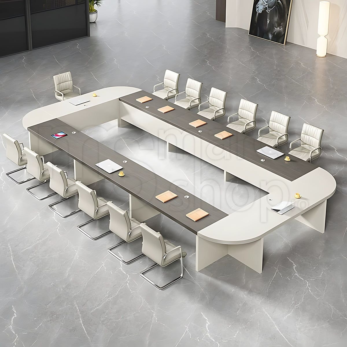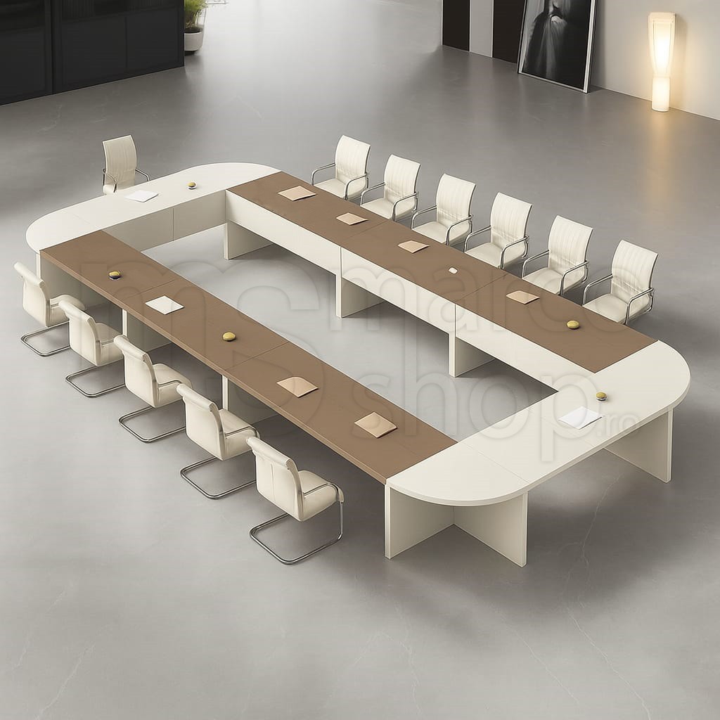 Masa conferinta, ce confera armonie, eleganta , simplitate si spatiu, ideala pentru spatiile din institutiile publice si private.
