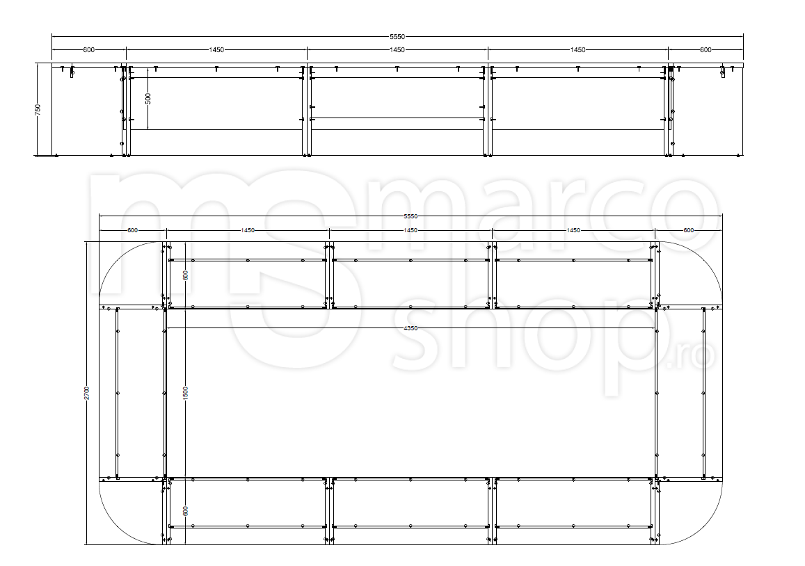 Dimensiuni555x270x75 cm