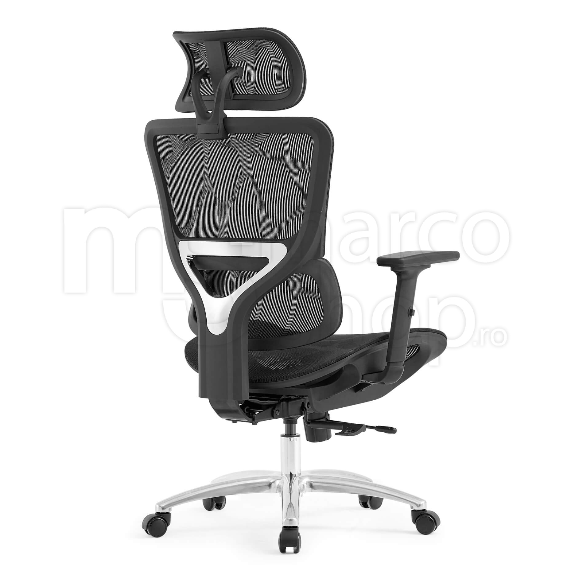 Scaun de birou ergonomic cu tetiera, baza aluminiu Sara
