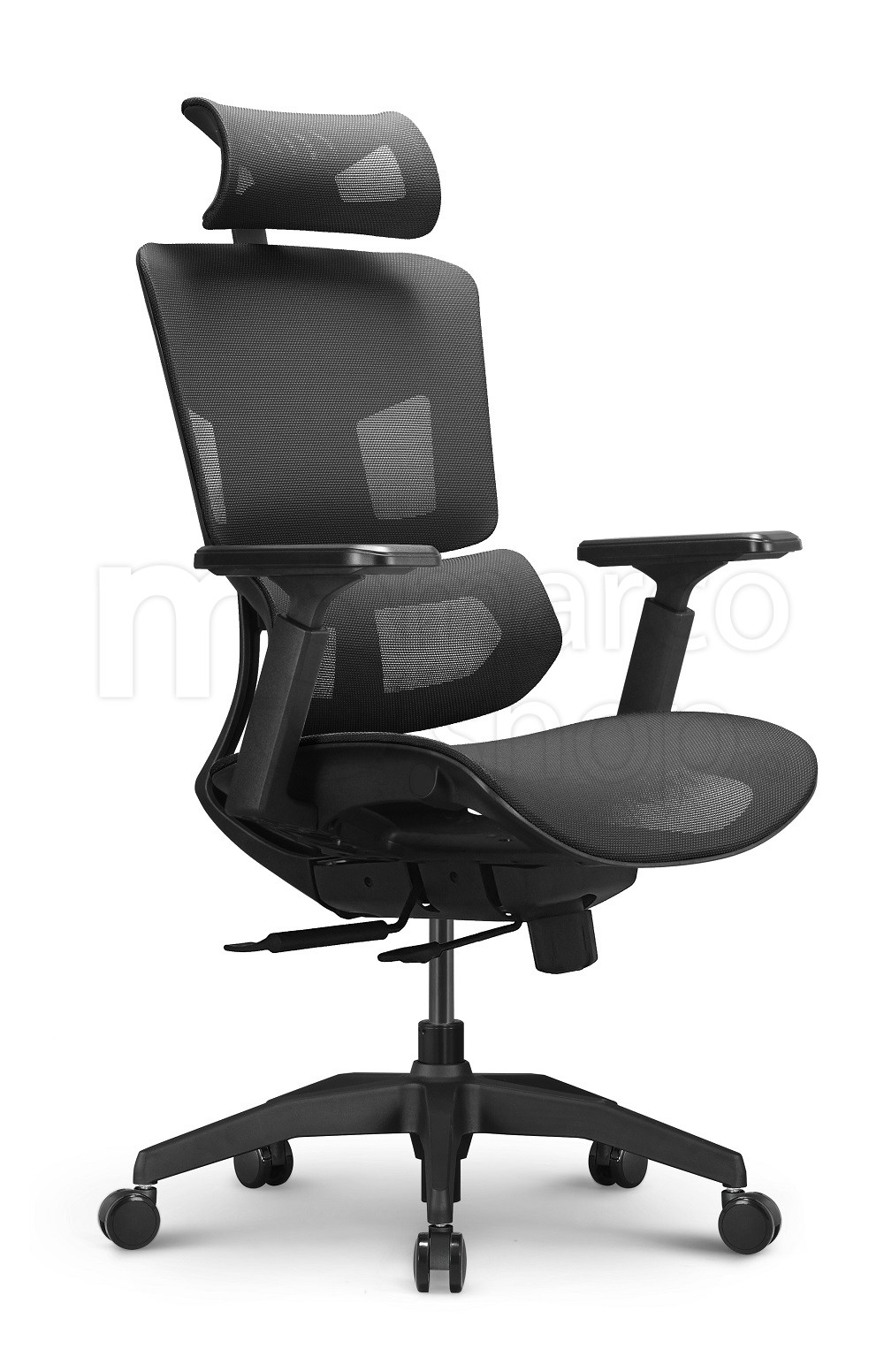 Reglaje premium: Translație șezut; Brațe 4D; Tetieră 2D; Tensiune balans; 3 puncte de blocare a unghiului pentru spătar.