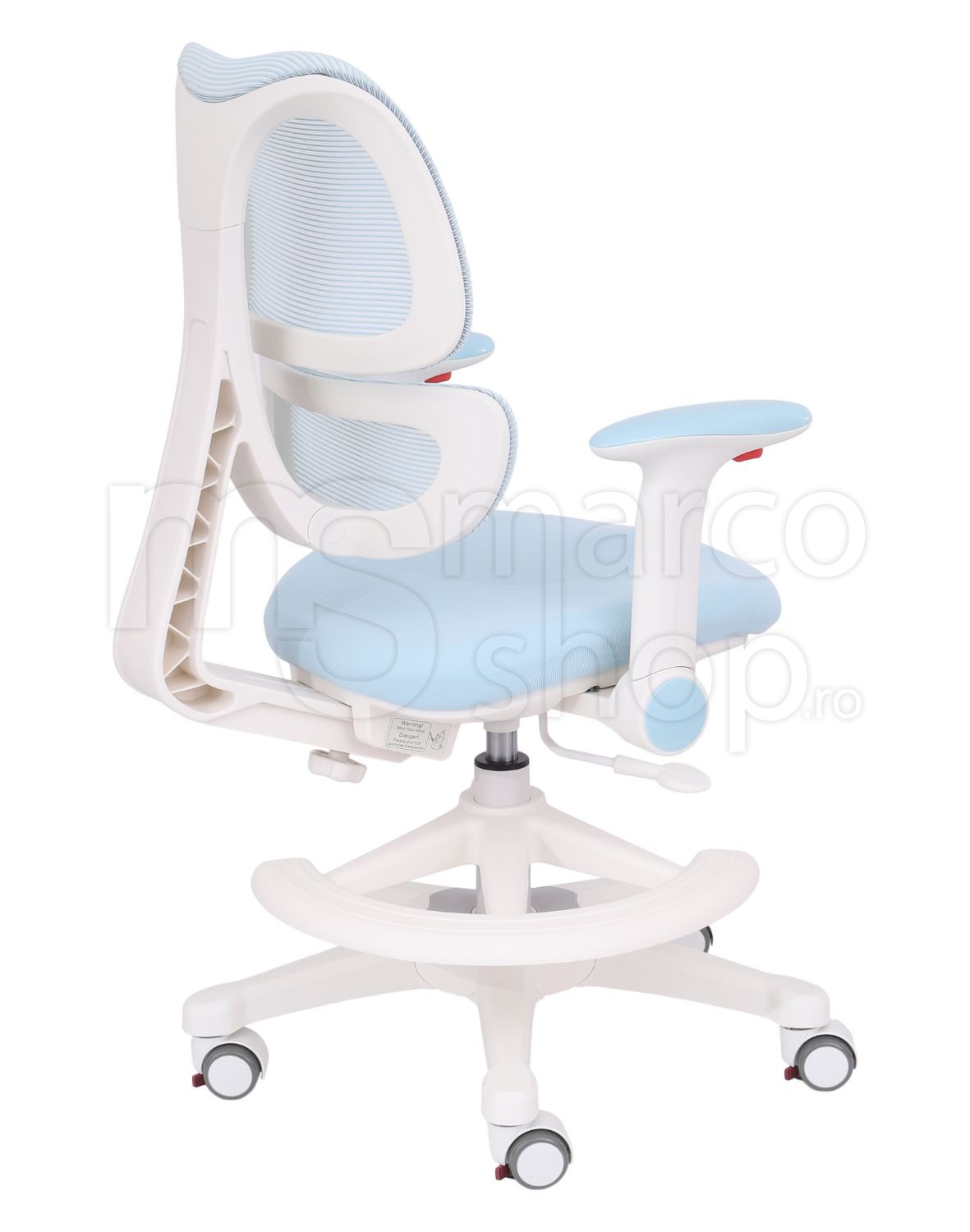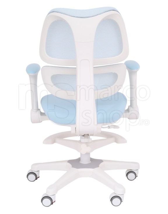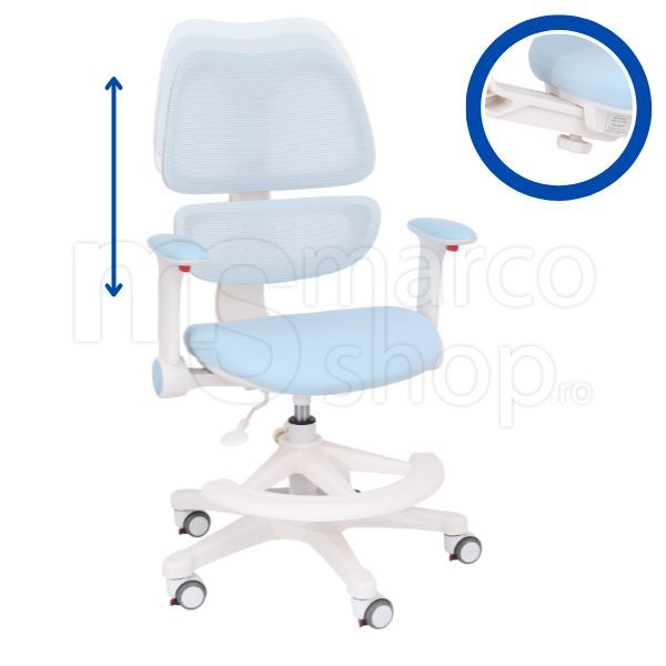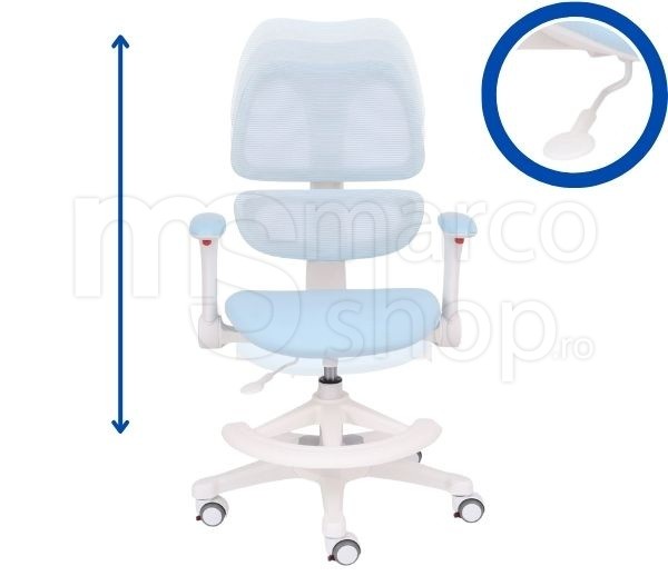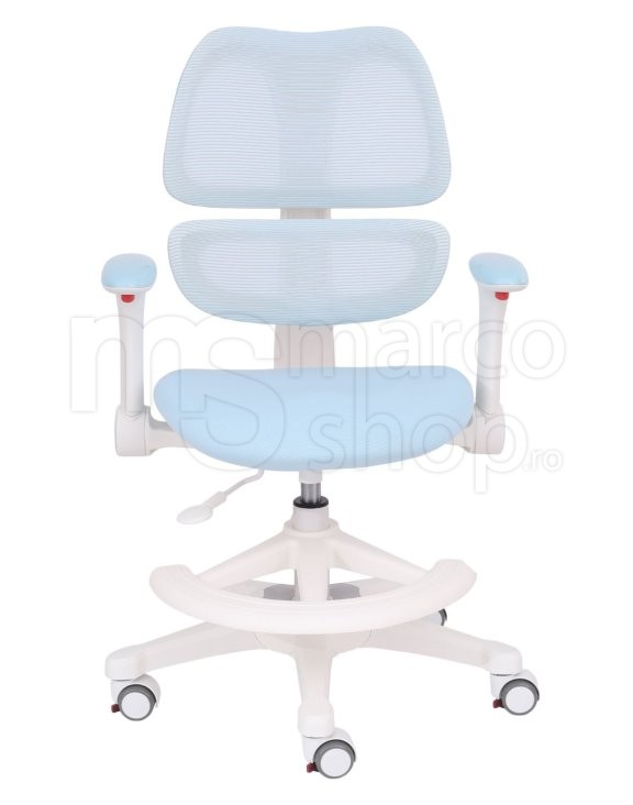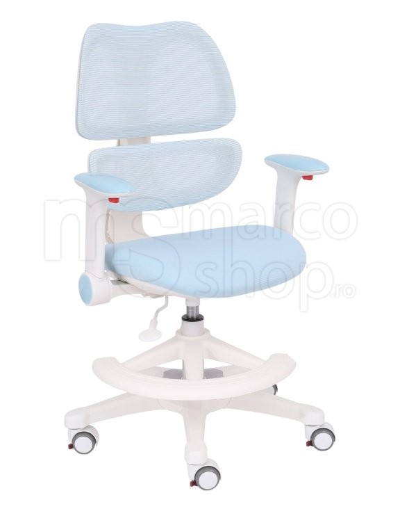 Scaun ergonomic pentru copii Elite Junior Ergo, cu suport lombar, cotiere reglabile si suport pentru picioare, Albastru